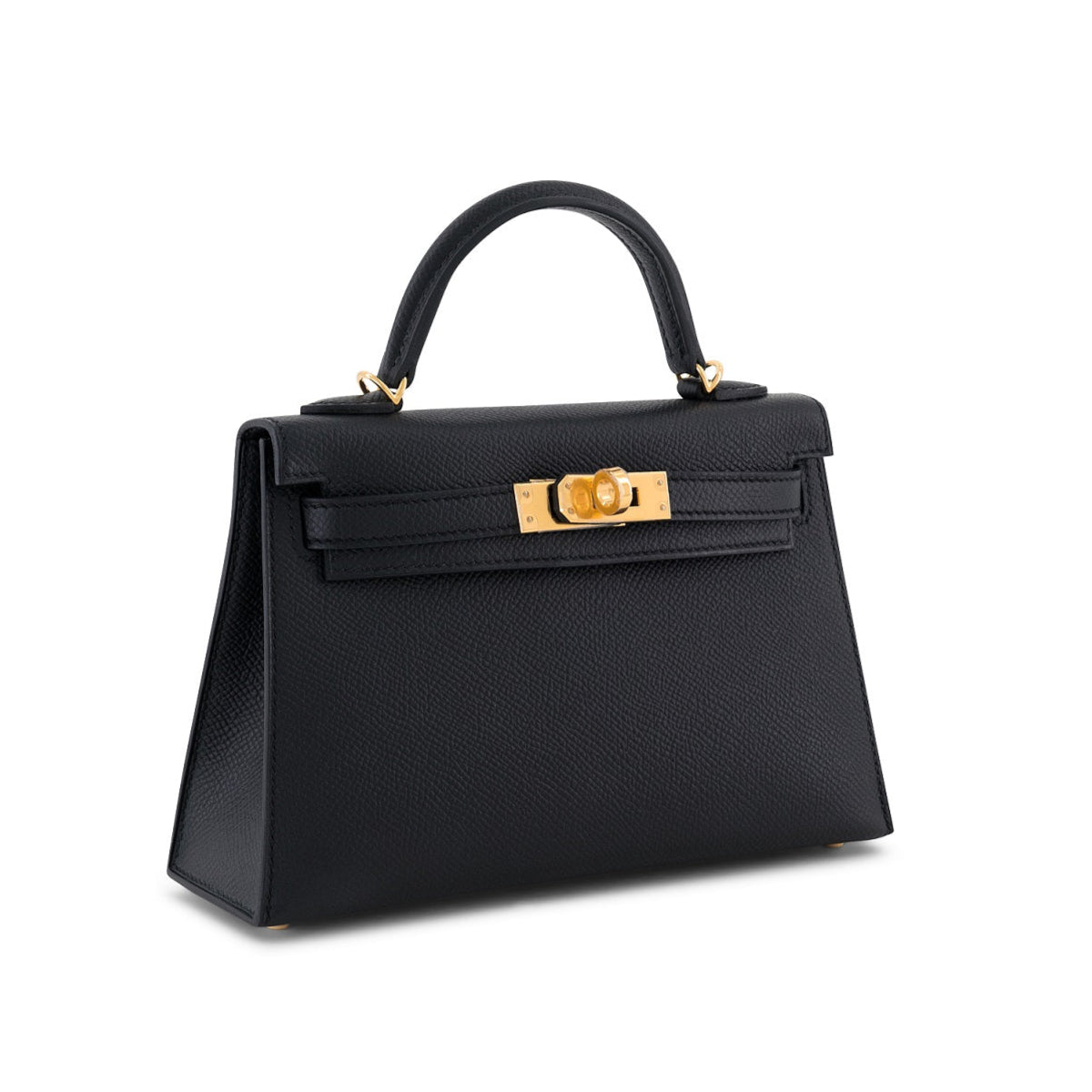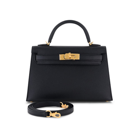 Black Mini Kelly 20cm Gold Hardware Epsom LeatherIncludes Hermes 2025 invoice, strap, box, and dust bag