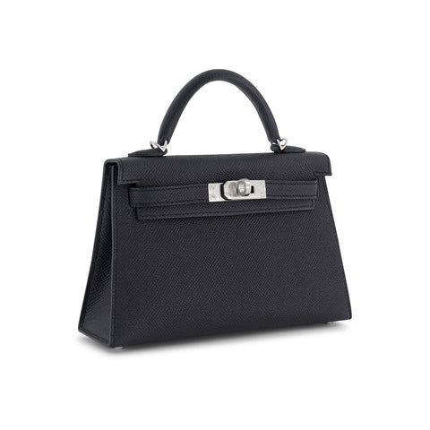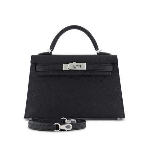 Hermes Black Mini Kelly 20cm Epsom Leather in Palladium Hardware Includes Hermes 2025 invoice, strap, box, dust-bag.Condition: Pristine