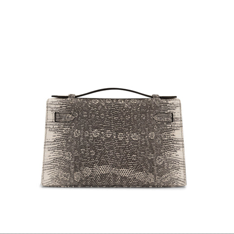 Ombre Lizard Kelly Pochette Palladium HardwareIncludes Hermes 2025 invoice, cities, box and dust-bag.Condition: Pristine